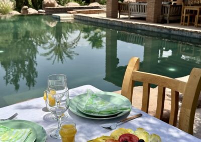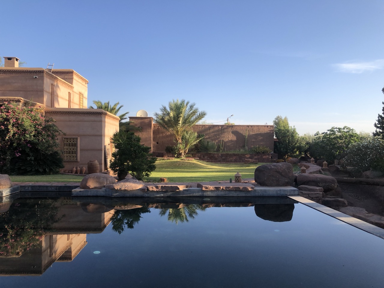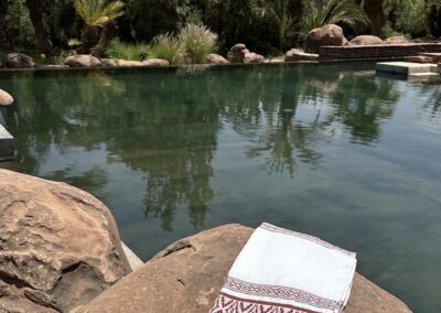 Für diesen Retreat haben wir ein Riad ganz für uns alleine. Ein Ort der Geborgenheit mit einem Garten, Olivenbäumen und einem Pool, der zum verweilen einlädt. Du wirst mit marokanischen Soulfood verwöhnt, das dich nährt und stärkt, und kannst zwischen den Sessions an einem der vielen lauschigen Plätze entspannen, dem Rascheln der Palmen zuhören und einfach tun, wonach sich deine Seele sehnt.